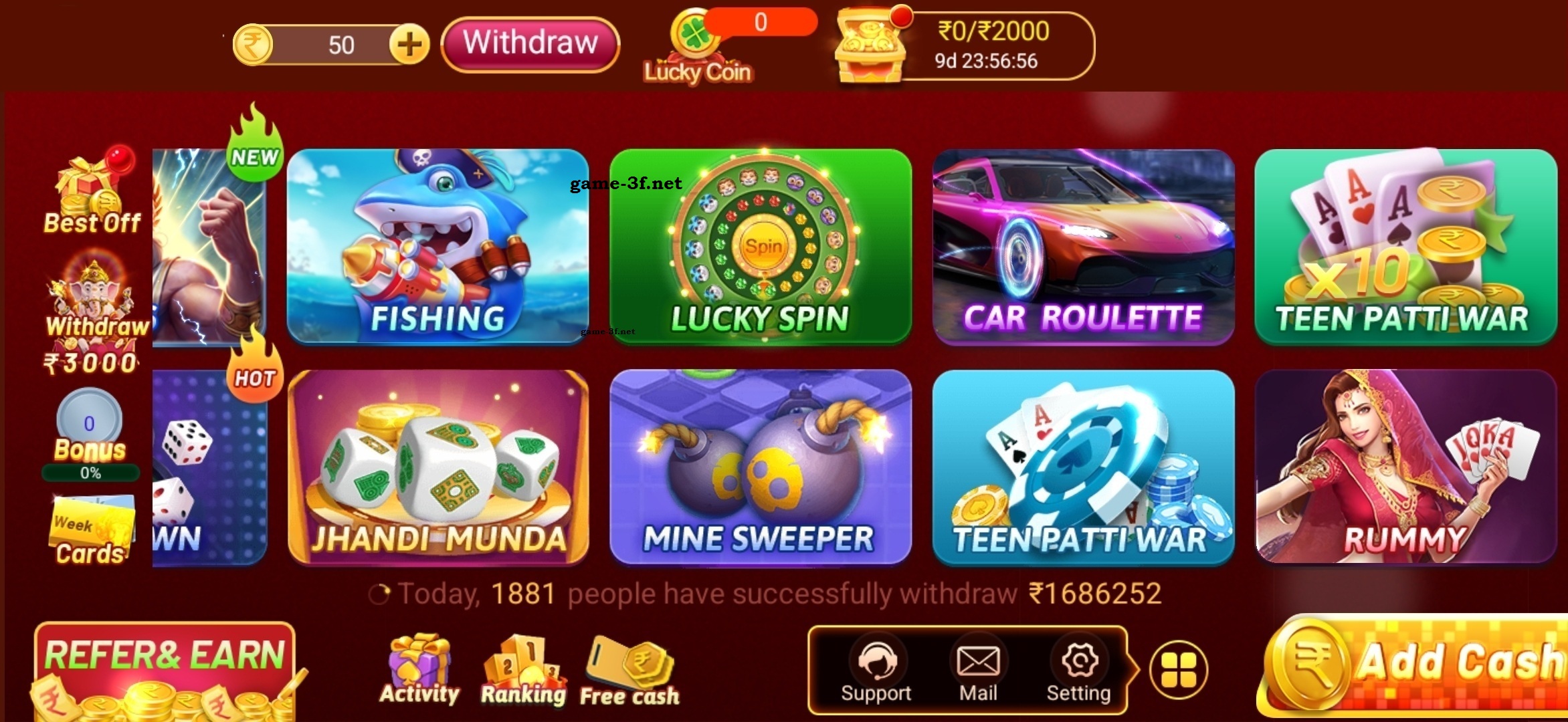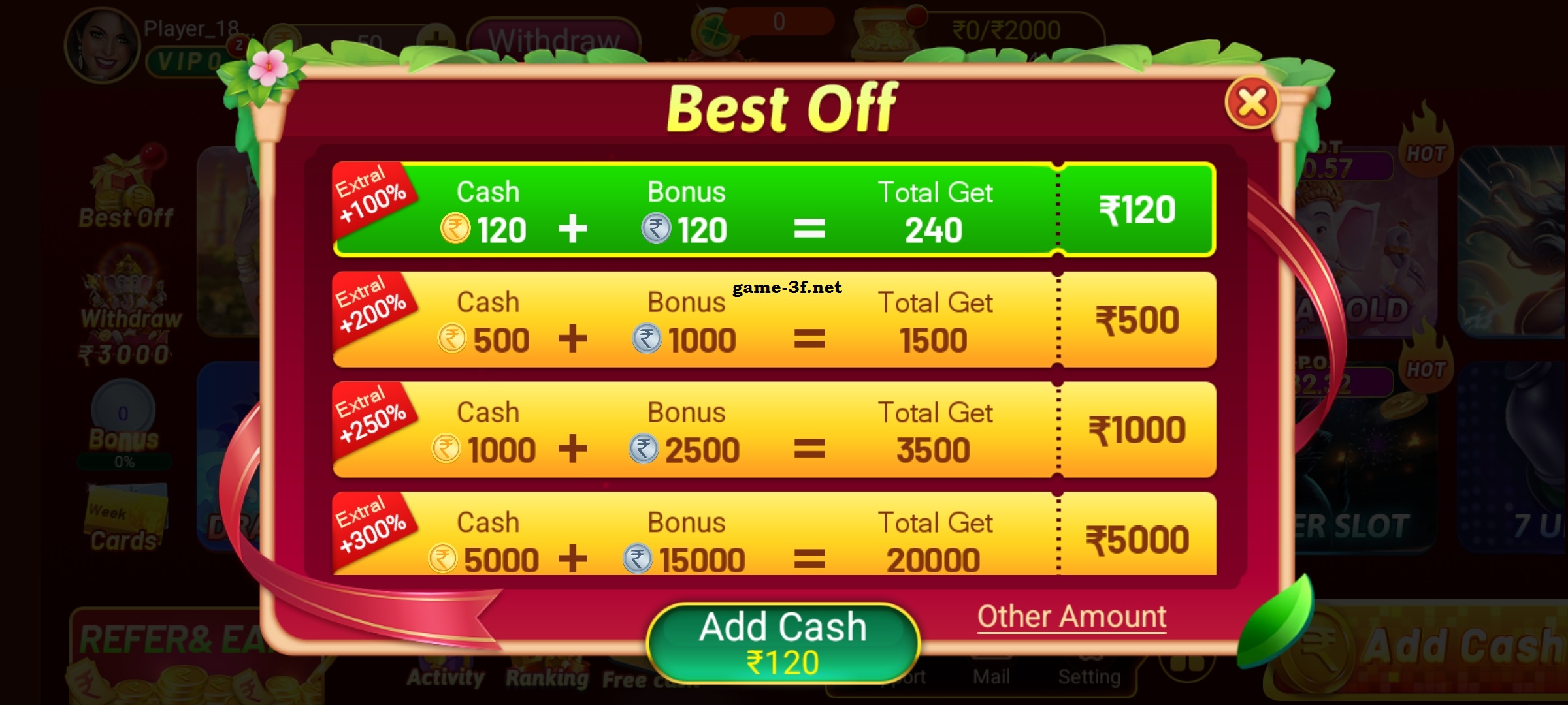 GAME 3F APP WELCOME BONUS 150/- SIGN UP BONUS