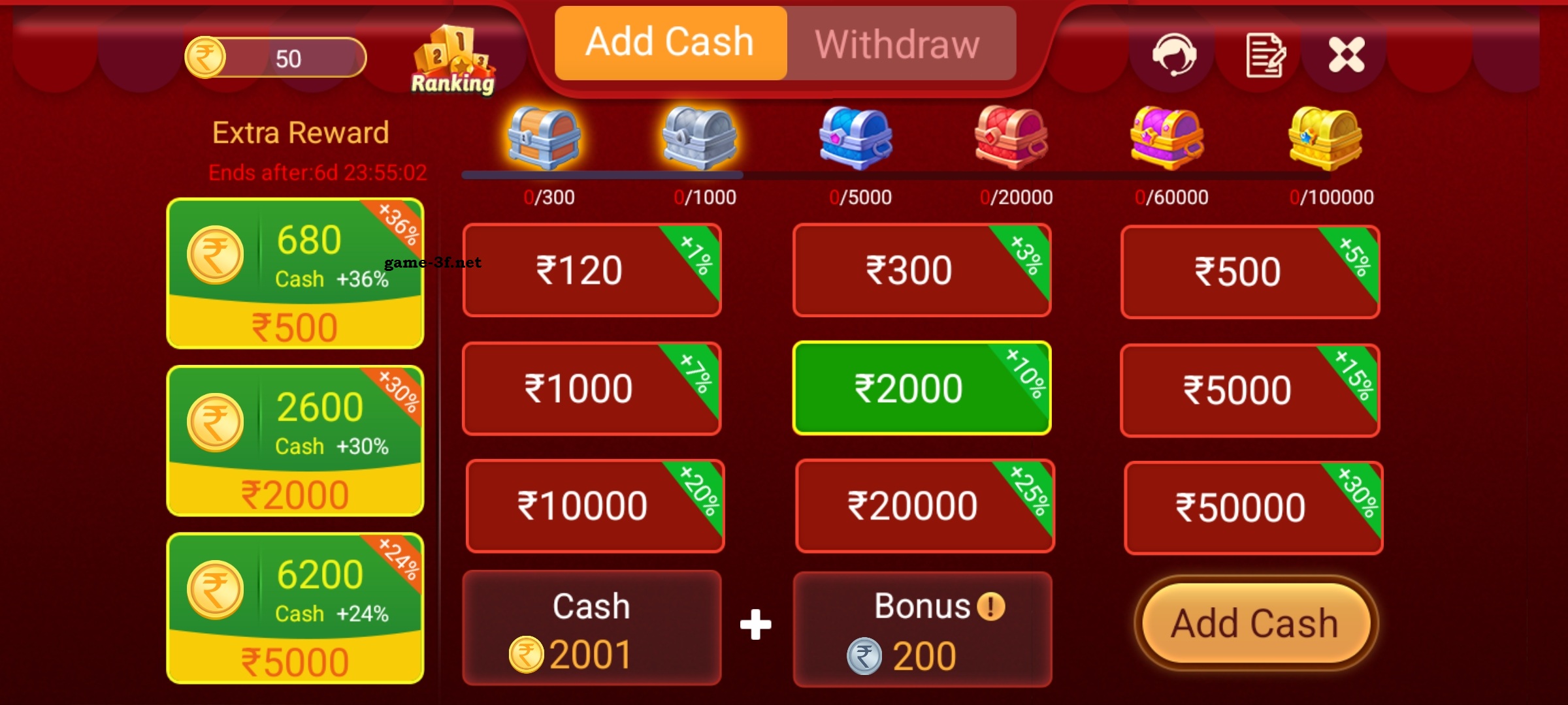 In the Card Option you will Get Extra Bonus Cash which you will get for free and this is the only Game Which Provides This Kind of Big Bonus.
